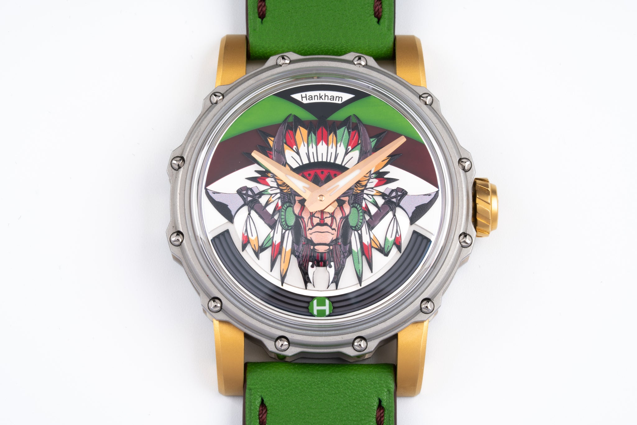 Hankham Two Tone Indians Dial on Green Leather Strap Miyota 8215