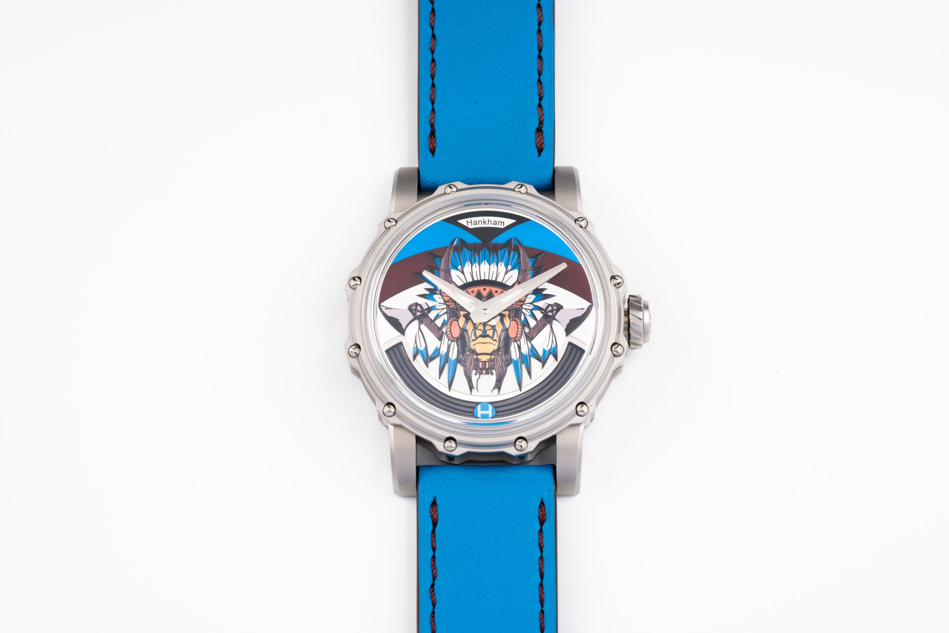Hankham SS Indians Dial on Blue Leather Strap Miyota 8215