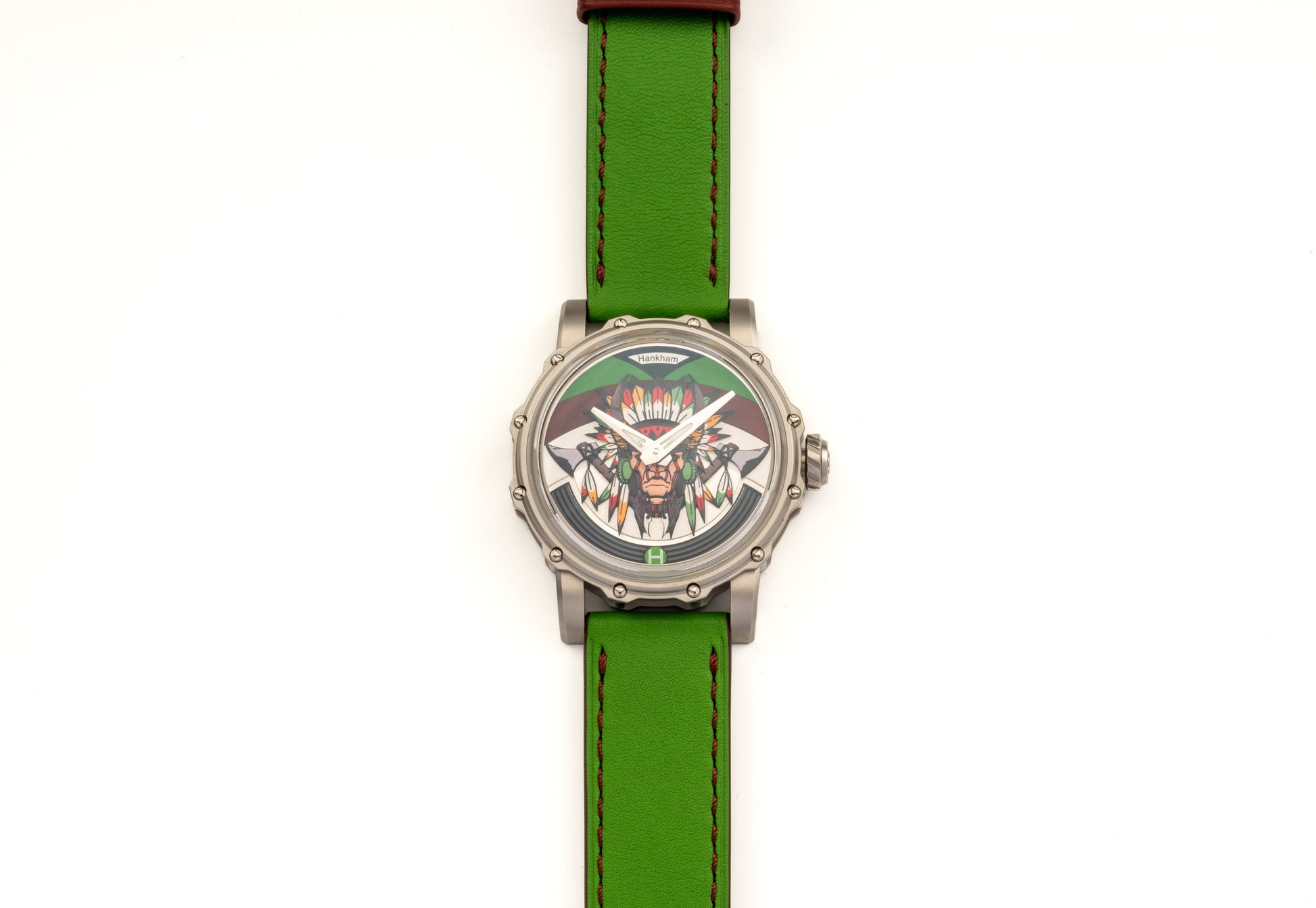 Hankham SS Indians Dial on Green Leather Strap Miyota 8215